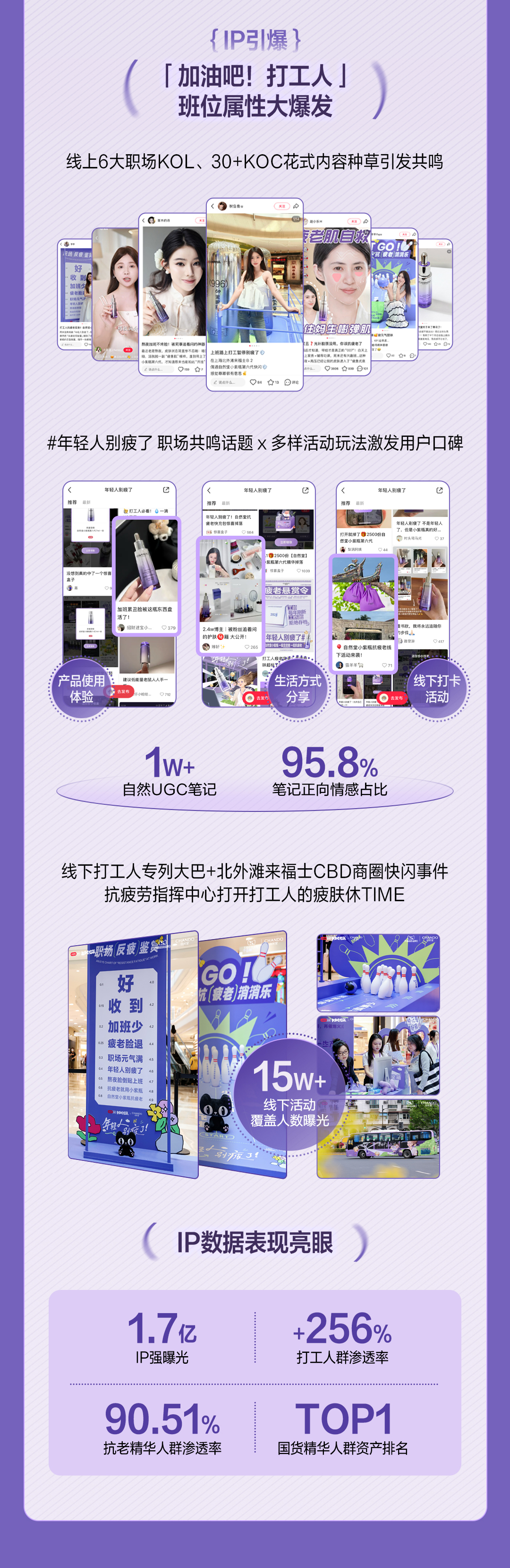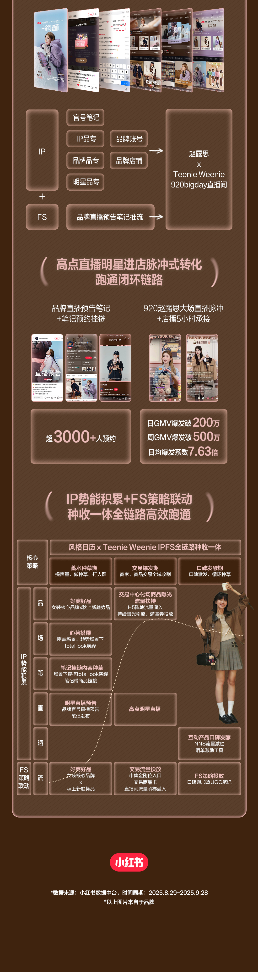 在IPFS的联动打法中,IP合作产出的优质内容(KOL/UGC笔记为核心),可作为品牌优质内容资产追投FS,实现原生口碑扩散,助力优质内容的影响力涟漪式放大;同时,IP触达和互动沉淀下来的精准人群资产,可通过定向投放与数据验证,实现种草效率与转化率的全面提升。从而将IP流量沉淀为可复用的内容资产与精准人群资产,持续提升品牌在小红书生态内的种草营销效率,形成从品宣曝光到生意转化的可复用增长路径。