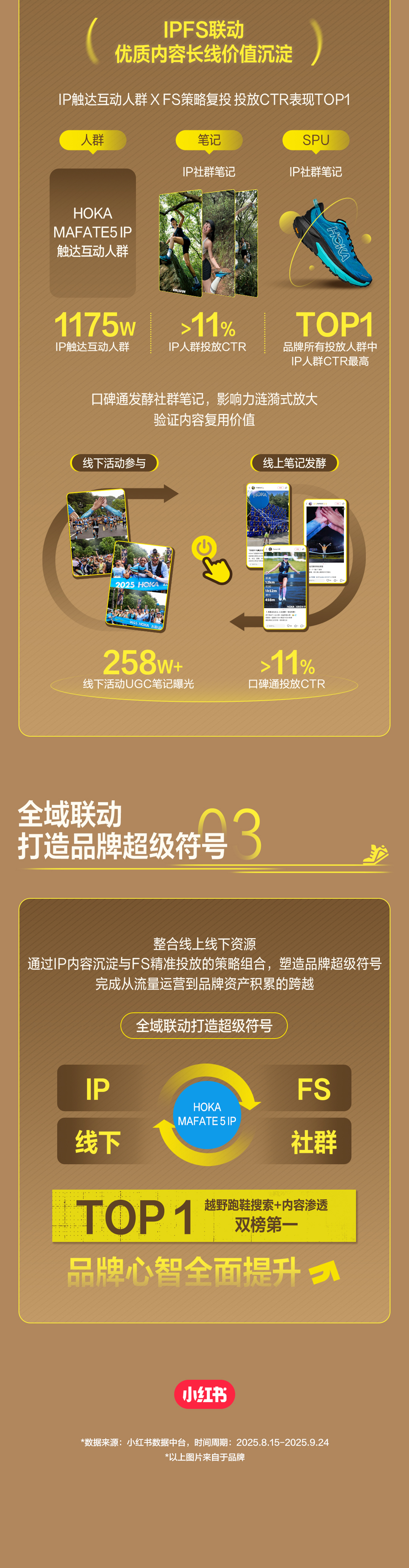 小红书生长于「真诚回应每一份真实精神需求」的土壤,始终强调“人Matters”。在此生态中,平台自然孕育原生内容场,让趋势融入无痕;在UGC洪流中筑起脉冲中心场,精准渗透人群心智;并与品牌深度协同,将IP势能转化为长效资产,持续反哺长尾渗透。