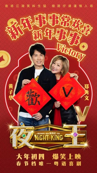 电影《夜王》由吴炜伦执导,江志强、何韵明、吴炜伦监制,黄子华、郑秀文领衔主演,谢君豪、王丹妮、廖子妤、杨伟伦、卢镇业、何启华、杨偲泳、谭旻萱、李芯駖、林熙彤、邓丽英、蔡蕙琪主演。影片由安乐影片有限公司、石榴影业有限公司、天津猫眼文化传媒有限公司出品,中国电影集团公司引进,安乐(北京)电影发行有限公司发行。影片将于大年初四在两广地区爆笑上映,预售已开启,大年初四影院纯享港式喜剧,纯粹欢笑迎春节。