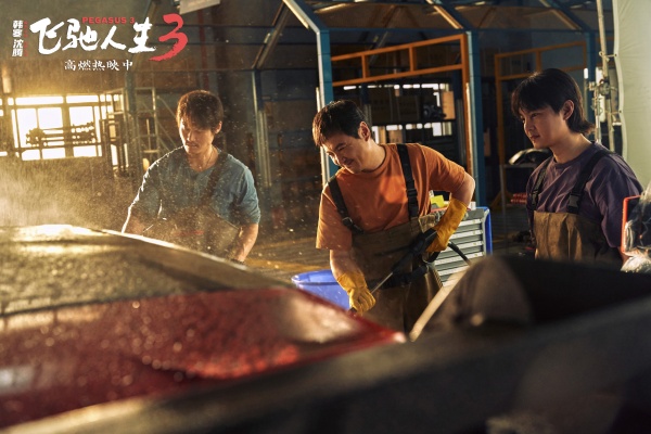 电影《飞驰人生3》延续该系列热血逐梦的赛车题材和欢笑感动的情感共鸣,讲述了张驰与新老朋友一起笑闯人生新赛段,开启爽燃新征程的故事。全新发布的“七年飞驰”版特辑带来了七年飞驰情怀的回响。总制片人李雯雯坦言:“系列三部电影都在春节档和观众见面,今年更希望大家能够感受到,这七年张驰和我们一样,有起有伏,有失意更有畅快和成长,也希望用这一部祝大家“飞驰人生,人生飞驰”。辛厂长(贾冰 饰)在辛地机械的厂房中将已经拆除的驾校星羽汽修场景完整复刻,这种跨越时空的重逢让沈腾觉得“特别梦幻”,张本煜亦感叹这里犹如“桃花源”。跟随他们一路征战的赛车也像老朋友一样再次登场,从道具升格为伙伴,在编剧兼导演韩寒临时增加的“铁三角”洗车戏份中,尹正为这辆相伴多年的赛车献上深情一吻,被沈腾调侃为“雨中情”。“铁三角”重聚,那份自由肆意的默契与快乐再次穿透银幕,精准呼应了观众心中的飞驰情。