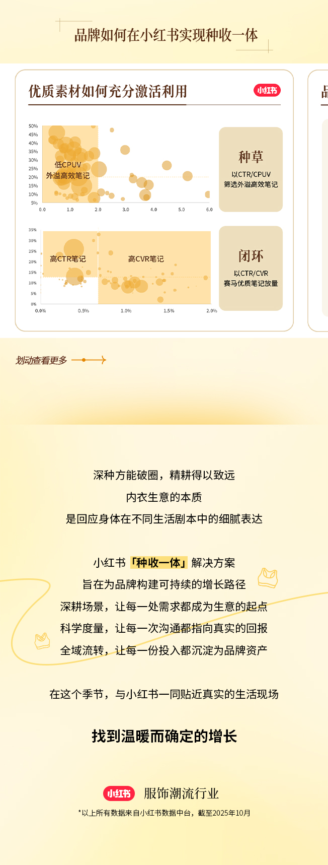 基于此,本期内容凝练出「小红书内衣行业长效增长密码」,围绕“人-场景-买点-竞争”的核心逻辑,系统拆解如何选对品、找对人、说对话,助力品牌在真实需求中找准增长支点,于细微场景里收获长期价值。