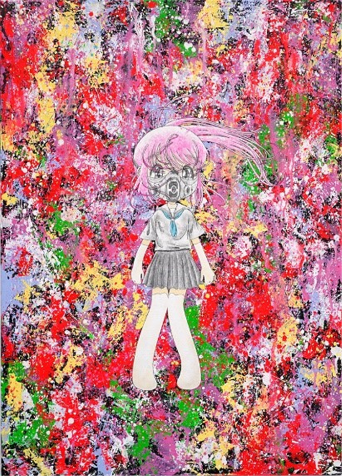 在此次展览最为亮眼的同名作品PH-VLKR中,小女孩虽然身着JK制服,看起来娇小可爱,但却带着女战士般挺拔的身姿与坚强的神态,甚至脸上的口罩这一时代象征,也被描绘为类似战斗装备,一反其它作品之中或甜美懵懂、或柔弱孤独、或总与可爱动物为伴的女孩形象,尽管她们是Kojiro最为人喜爱的艺术形象。然而通过此次展览的主题,我们可以想见,随着女儿的成长,作为父亲的Kojiro对她的期许也在慢慢转变。这也正回应了当下社会的对性别特质观念的转向,也提醒着我们,萌也可以充满力量,而这样的力量,尤其来自于父亲思想与行动的赠予,如同人类征服天空与星际的雄心与勇气。哪怕在动漫审美和可爱少女仍广受喜爱的日本,艺术作品中依然诞生过,并且将越来越多地诞生出一个个战无不胜的“女武神”。