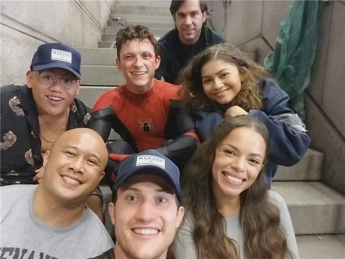 在不久前发布的杀青照中,蜘蛛侠居然“满脸伤痕”,让一众网友直呼“心疼小蜘蛛”。此前荷兰弟曾声称“本片的打戏非常精彩”,“战损妆”的释出似乎印证了这一点。在杀青照中,蜘蛛侠的死党内德和女友MJ分别坐在蜘蛛侠荷兰弟的两侧,他们前方的三位演员神似“中年版”的蜘蛛侠三人组,不禁引发网友们对剧情发展的猜测。