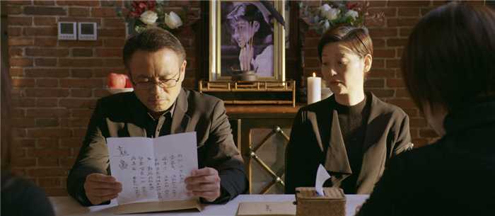 随后家人在整理白静慧遗物时,发现两封给孙辈的手写信:一封是早就拟好的遗嘱,意在将自己名下房产留给孙女戴小雨;另一封则更像因为房产分配后写给外孙女鲍雪(蓝盈莹饰)的解释。戴厚江与戴澄澄(徐帆饰)分别将两封信念给孙辈们听,场景像是祖孙间的真情话别……