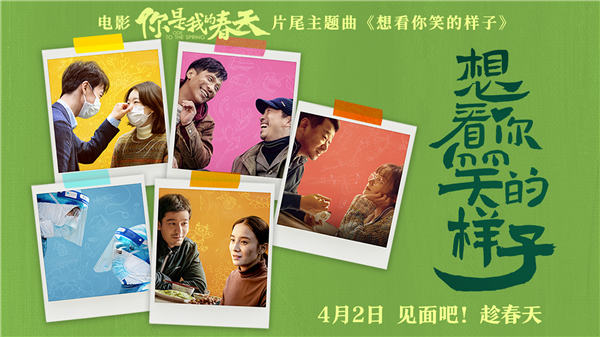电影《你是我的春天》今日发布主题曲《想看你笑的样子》MV,主题曲由著名音乐人小柯创作词曲并操刀制作,影片监制黄渤携手领衔主演周冬雨、尹昉、潘斌龙、黄晓明、宋佳,化身一期一会的“春日限定天团”惊喜献唱,黄渤、赵今麦特别献声MV念白,领衔主演王景春、黄超、杨斯、张航诚及主演郑罗茜、曾梦雪、付妤舒也纷纷在MV中展露春天里的微笑,电影主创接力转发传递笑容,为此刻处于“料峭春寒”中的人们加油打气。温情治愈的声音与充满希望感的歌词,与MV中真挚动人的电影画面、普通人真实又温暖的笑容交织,诠释了困境之下的依旧微笑坚守的“你”“我”。
