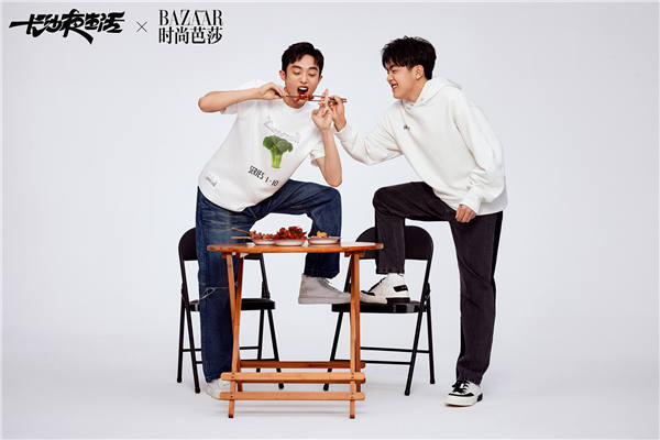 烟火入夜,知味长沙。在这套与时尚芭莎联动的大片和特辑中,随着长沙夜宵王者“口味虾”的辣香弥漫,尹昉、张婧仪、苏岩、吴昊宸、白宇帆、周思羽六位演员统一着T恤牛仔的简单装扮,一齐变身“好恰鬼”(长沙话:吃货)围聚餐桌旁,举起筷子、套上塑料手套,准备大快朵颐,尽享地道长沙美味。而长沙本地夜宵大排档中常见的塑料凳、塑料筐以红黄两色登场,更将长沙夜生活的年轻态、活力感张扬到极致。在这组大片与特辑舒服、极简又接地气的演绎下,不难看出长沙人夜生活的热闹精彩、活色生香,同时也不禁惹人猜测,“吃”是不是电影《长沙夜生活》中的重要线索呢?