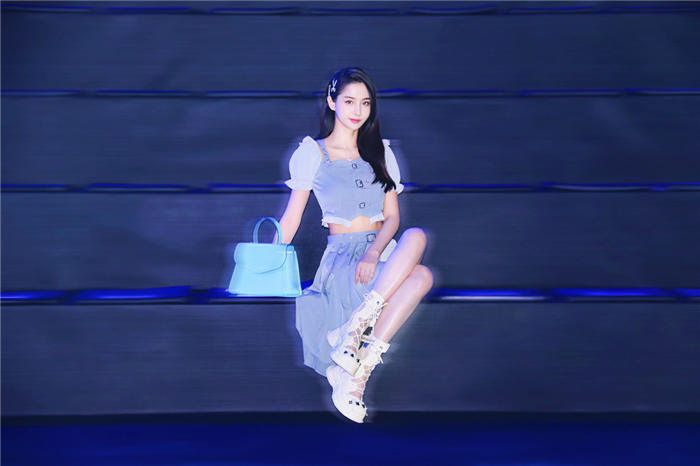 蓝心妍亮相国际时装周 娃娃袖百褶裙少女感爆棚
