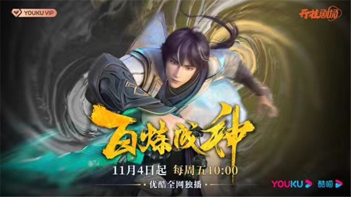 11月4日,由优酷信息技术(北京)有限公司出品,苏州晴祥文化传播有限公司、上海渔阳网络技术有限公司联合出品的《百炼成神》将于每周五上午10点在优酷动漫“开挂剧场”独家播出,首周更新两集,会员抢先看一集。《百炼成神》改编自恩赐解脱同名小说,主要讲述了在家族内乱中沦为家奴的天才少年罗征,偶然触发父亲留下的神秘功法,一路逆天改命升级创世神的故事。
