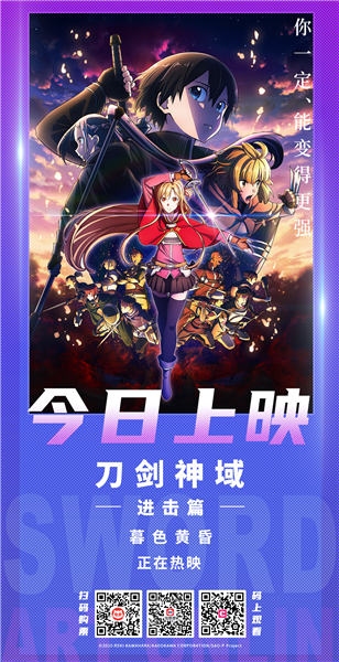 电影《刀剑神域进击篇:暮色黄昏》正在热映,让我们一起走进影院,再次登陆SAO,感受伙伴间的冒险旅程和热血牵绊,相约银幕,燃情青春!