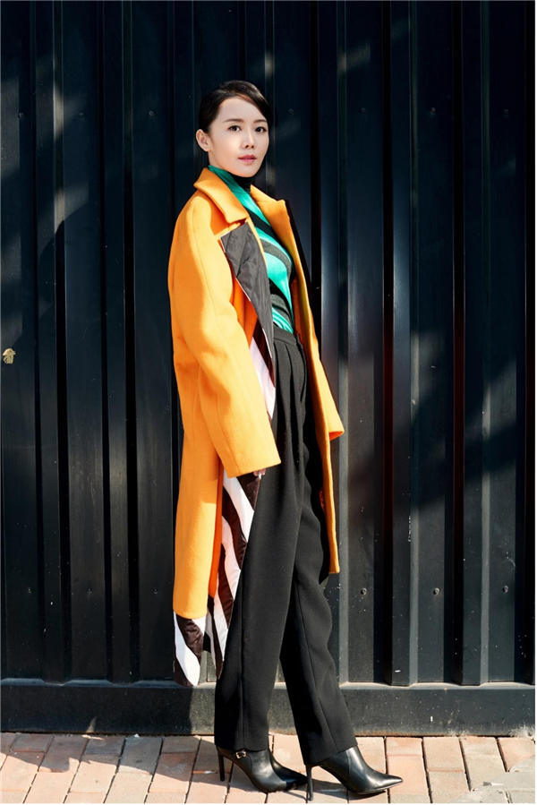 车永莉初春撞色好会穿!橙色大衣氛围感拉满