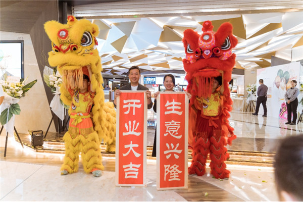 舞狮,是中国优秀的民间艺术舞狮。每逢节庆或有重大活动必有舞狮助兴,长盛不衰,历代相传。影城启幕当天举行了“舞狮点睛”仪式,英皇电影城(中国内地)总经理李承翰先生、英皇电影城成都悠方店店长吴艳女士一同参与了“点睛醒狮”环节。瑞狮采青寓生财,这不仅寓意着英皇电影城票房长虹,更是表示着成都城南影迷即将享受到英皇电影城的高端品质和用心服务。